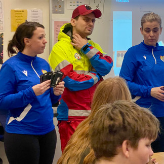 Fulltrúarnir Hafdís, Davíð og Kolbrún spjölluðu við nemendur um mikilvægi þess að gæta öryggis í umferðinni, m.a gangandi og hjólandi, að nota hjólahjálma og að nota endurskinsmerki, ekki síst á þessum dimmustu og stystu ,,dögum" ársins sem verður enn meira áberandi þegar enginn er snjórinn.